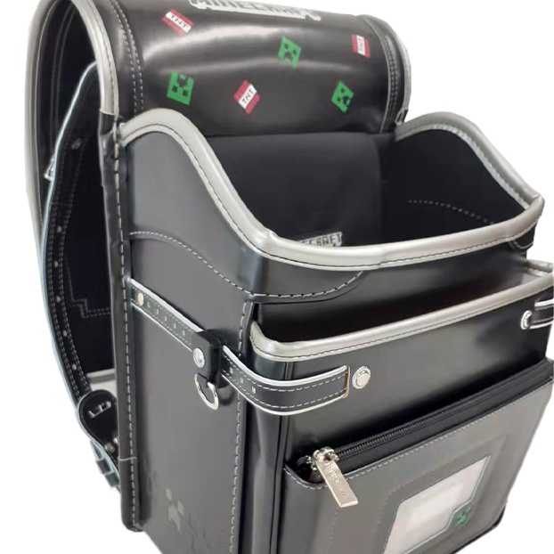 | ①タブレット収納ポケット付 ②カブセ裏に人気キャラクリーパーをプリント ③名入れ横にクリーパーのエンボス加工 |