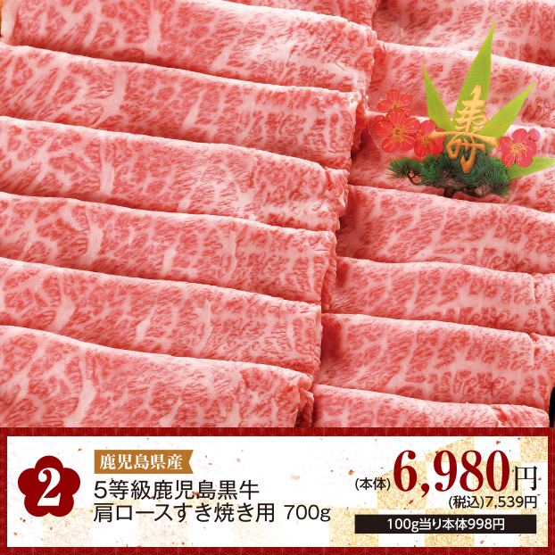 2.鹿児島県産5等級鹿児島黒牛肩ロースすき焼き用700g