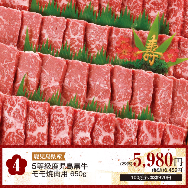 4.鹿児島県産5等級鹿児島黒牛モモ焼肉用650g