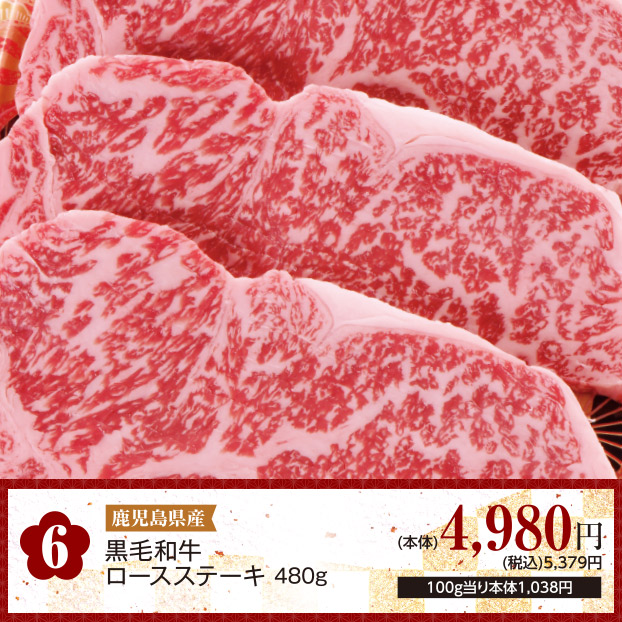 6.鹿児島県産黒毛和牛ロースステーキ480g