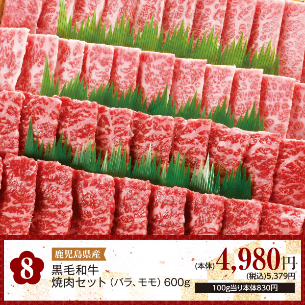 8.鹿児島県産黒毛和牛焼肉セット(バラ・モモ)600g