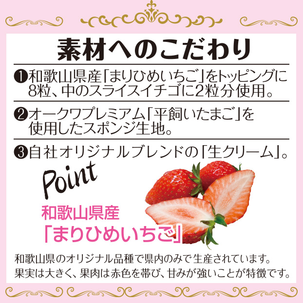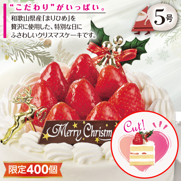 和歌山県産「まりひめ」を贅沢に使用した、特別な日にふさわしいクリスマスケーキです。