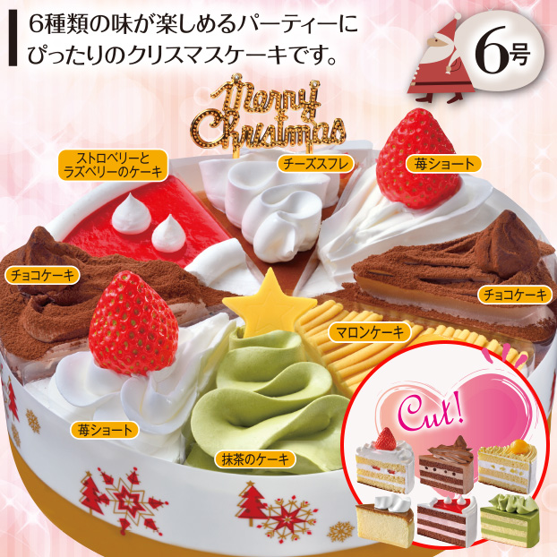 6種類の味が楽しめるパーティーにぴったりのクリスマスケーキです。