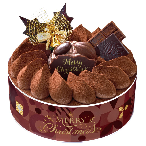 チョコチップとチョコクリームをサンドし、チョコをトッピングしたチョコづくしのクリスマスケーキです。