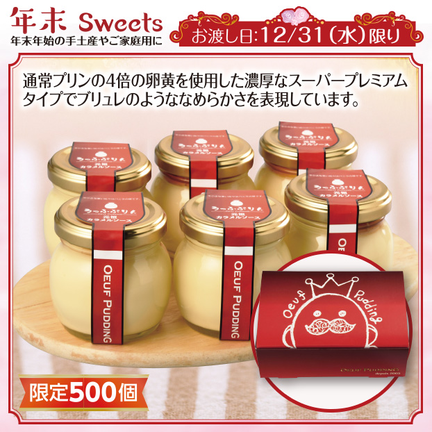 通常プリンの4倍の卵黄を使用した濃厚なスーパープレミアムタイプでブリュレのようななめらかさを表現しています。