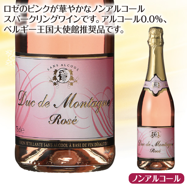 ロゼのピンクが華やかなノンアルコールスパークリングワインです。アルコール0%、ベルギー王国大使館推奨品です。