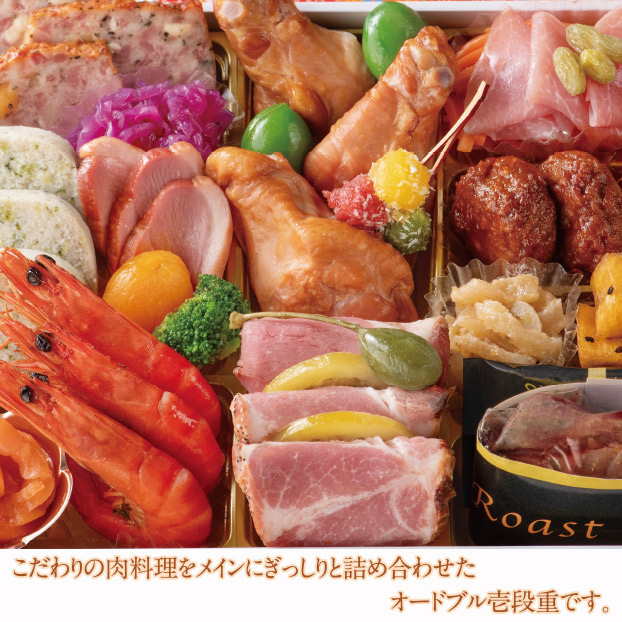 こだわりの肉料理をメインにぎっしりと詰め合わせたオードブル壱段重です。