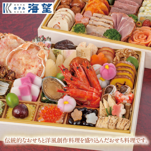伝統的なおせちと洋風創作料理を盛り込んだおせち料理です。