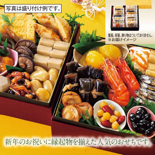 新年のお祝いに縁起物を揃えた人気のおせちです。