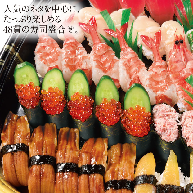 人気のネタを中心に、たっぷり楽しめる48貫の寿司盛合せ。