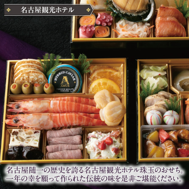 名古屋随一の歴史を誇る名古屋観光ホテル珠玉のおせち。一年の幸を願って作られた伝統の味を是非ご堪能ください。