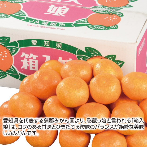 愛知県を代表する蒲郡みかん園より、秘蔵っ娘と言われる「箱入娘」は、コクのある甘味とひきたてる酸味のバランスが絶妙な美味しいみかんです。