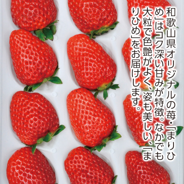 和歌山県オリジナルの苺・「まりひめ」はコク深い甘みが特徴。なかでも大粒で色艶がよく、姿も美しい、「まりひめ」をお届けします。