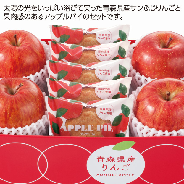太陽の光をいっぱい浴びて実った青森県産サンふじりんごと果肉感のあるアップルパイのセットです。