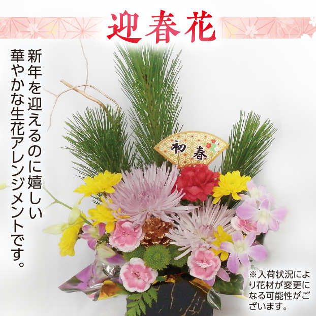 新年を迎えるのに嬉しい華やかな生花アレンジメントです。