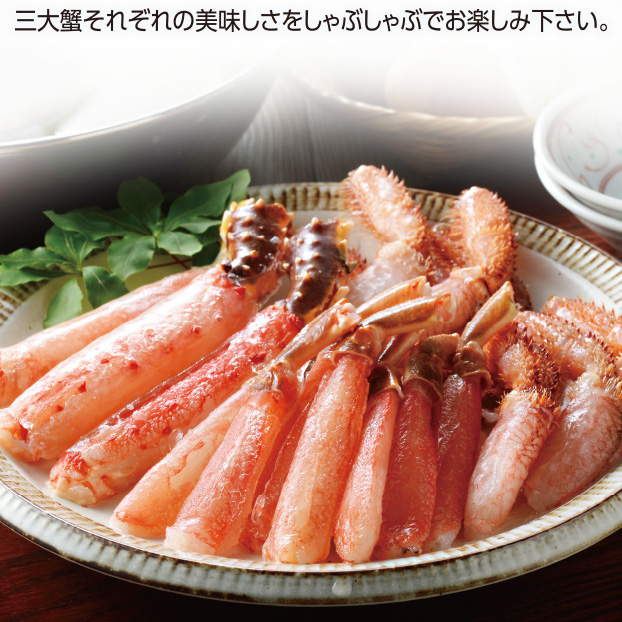 三大蟹それぞれの美味しさをしゃぶしゃぶでお楽しみ下さい。