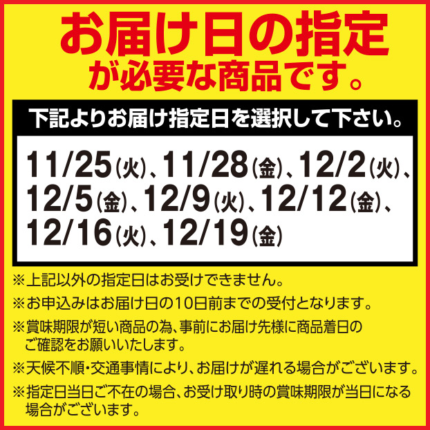 - ※在庫や出荷状況により、ご指定いただいた日時よりも配送が遅れる場合がございます。