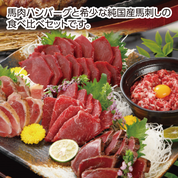馬肉ハンバーグと希少な純国産馬刺しの食べ比べセットです。