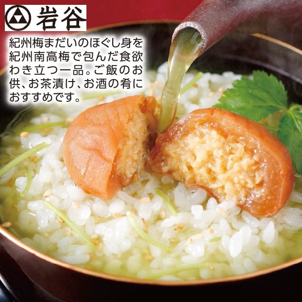 紀州梅まだいのほぐし身を紀州南高梅で包んだ食欲わき立つ一品。ご飯のお供、お茶漬け、お酒の肴におすすめです。