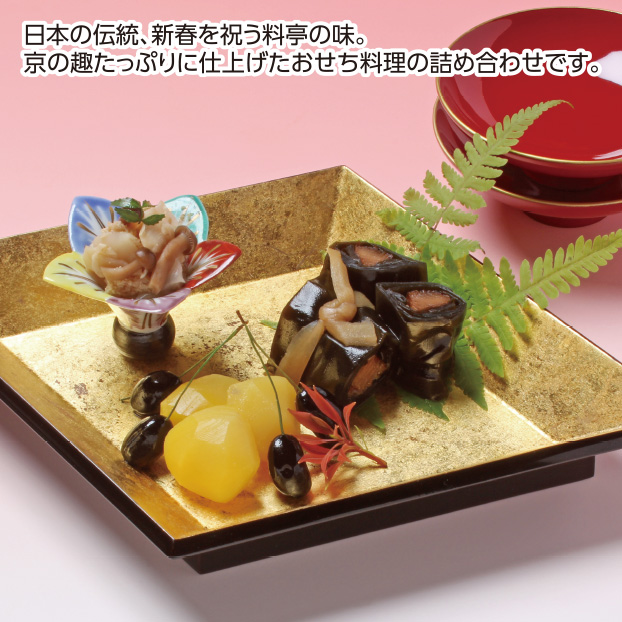 日本の伝統、新春を祝う料亭の味。京の趣たっぷりに仕上げたおせち料理の詰め合わせです。