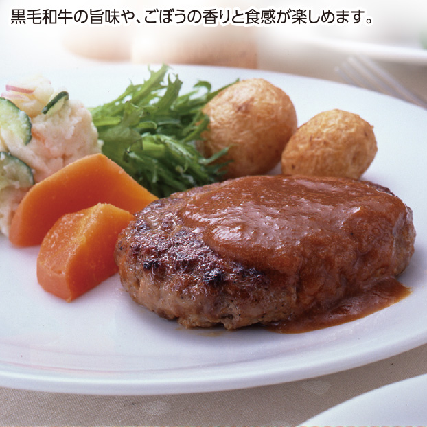 - ※黒毛和牛入りハンバーグステーキ140g×4、黒毛和牛入りごぼうハンバーグステーキ140g×4、デミグラスソース(30g×2)×4