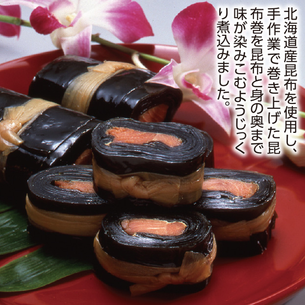 - ※にしん昆布巻×2本、紅鮭昆布巻×1本、ぶり昆布巻×2本