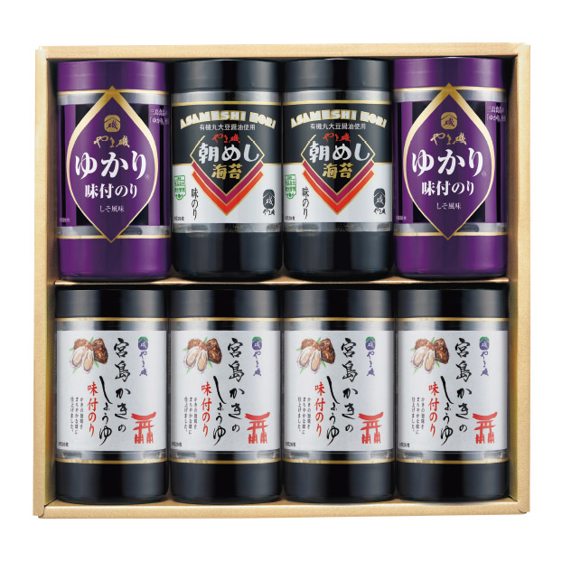 - ※かき醤油味付のり8切26枚×4、味付のり8切26枚×2、ゆかり味付のり8切26枚×2