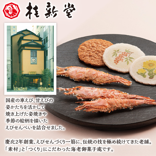 - ※車えび姿焼き×1カップ、甘えび姿焼き×1カップ、赤えび炙り焼き×9袋、南天×6袋、福寿草×6袋
