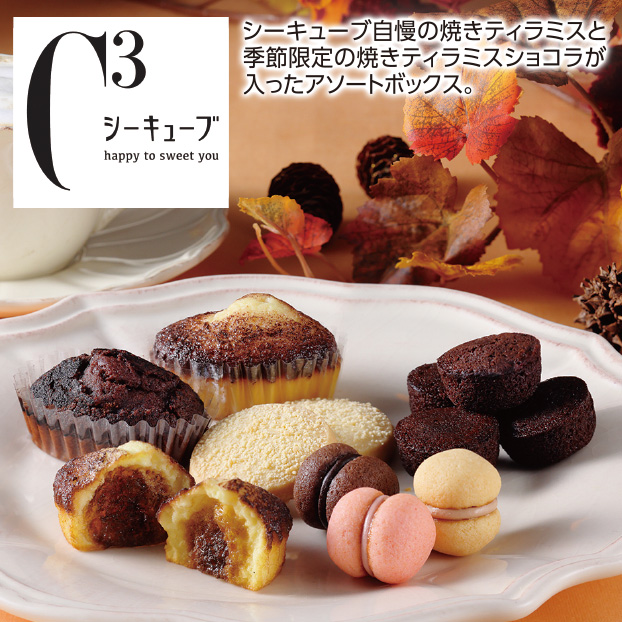 シーキューブ自慢の焼きティラミスと季節限定の焼きティラミスショコラが入ったアソートボックス。