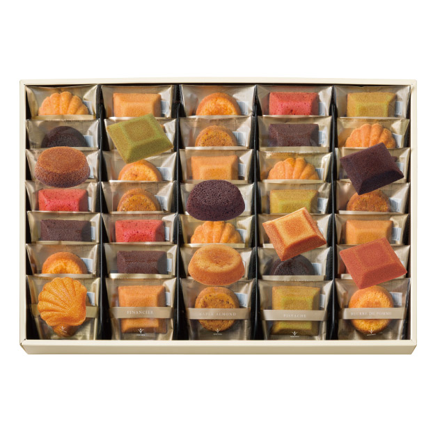 - ※マドレーヌ×5、チョコオレンジケーキ×3、メープルアーモンドケーキ×5、いちごバターケーキ×4、フィナンシェショコラ×4、フィナンシェ×5、フィナンシェピスタチオ×4、りんごバターケーキ×5