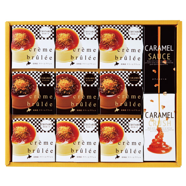 - ※クリームブリュレ72g×6、クリームブリュレキャラメル74g×3、カラメルソース5g×9、カラメルクラッシュ2g×9
