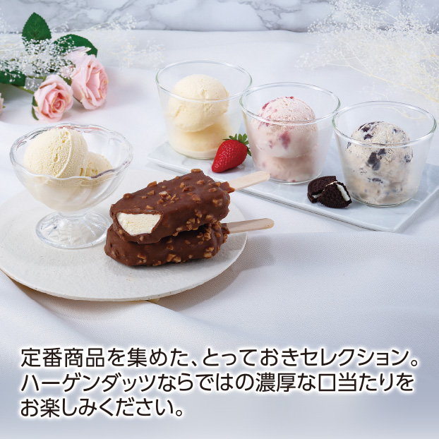 定番商品を集めた、とっておきセレクション。ハーゲンダッツならではの濃厚な口当たりをお楽しみください。