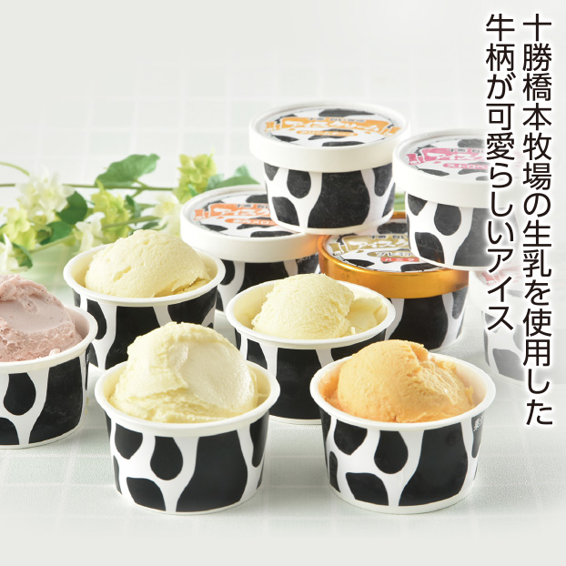 十勝橋本牧場の生乳を使用した牛柄が可愛らしいアイス