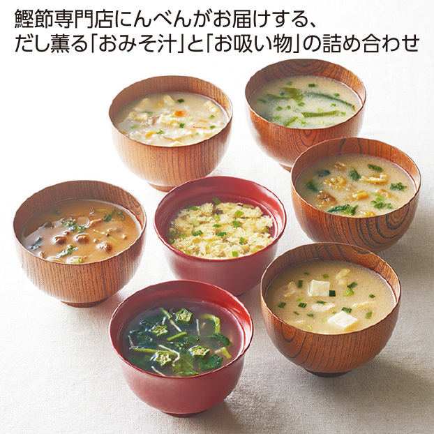 鰹節専門店にんべんがお届けする、だし薫る「おみそ汁」と「お吸い物」の詰め合わせ