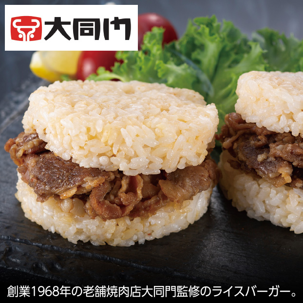 創業1968年の老舗焼肉店大同門監修のライスバーガー。