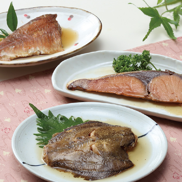 - ※かれい煮付×3袋、ぶり煮付×3袋、赤魚煮付×3袋