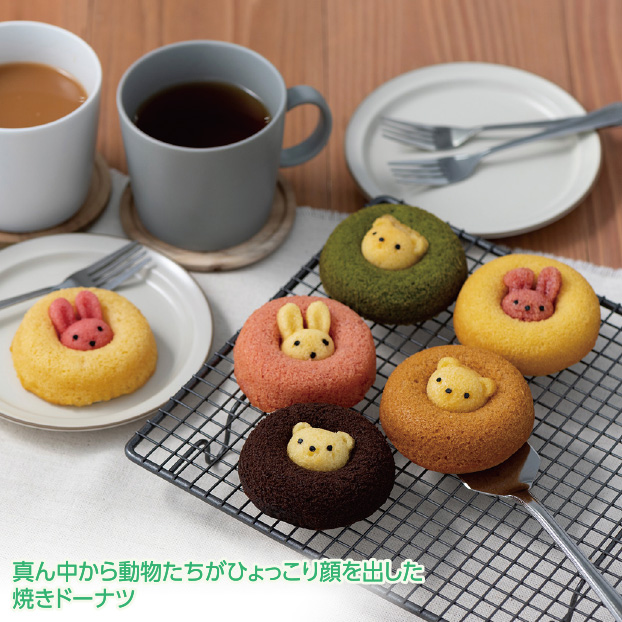 真ん中から動物たちがひょっこり顔を出した焼きドーナツ