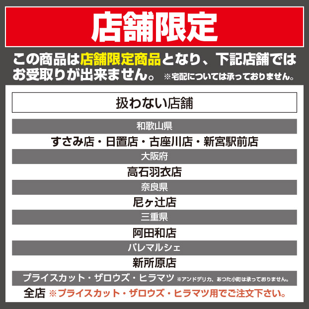 近隣の取扱店舗でお受取りいただけます。ご注文手続き「お支払い・配送方法入力」画面で受取店舗をご選択ください。