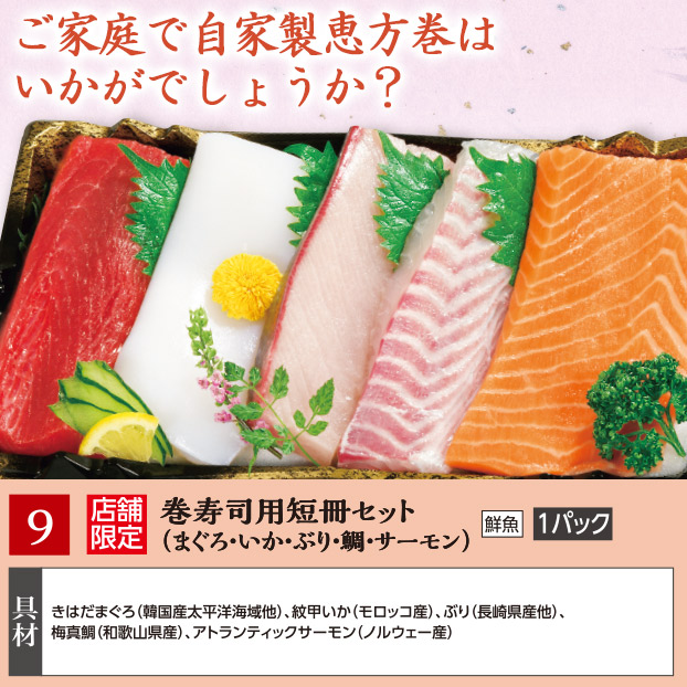 9.巻寿司用短冊セット(まぐろ・いか・ぶり・鯛・サーモン)1パック
