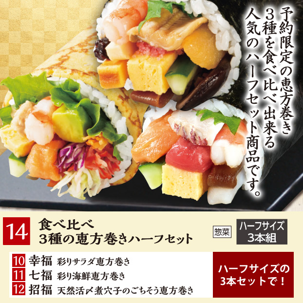 14.食べ比べ 3種の恵方巻きハーフセットハーフサイズ3本組