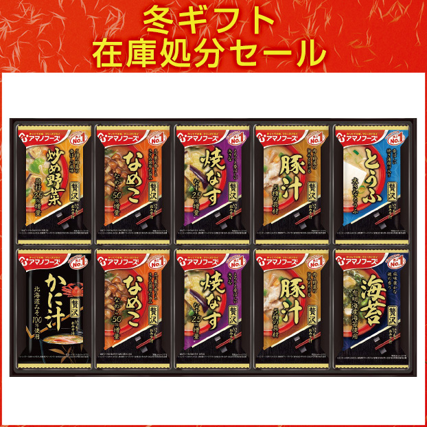 - ※いつものおみそ汁贅沢(焼なす9.1g、なめこ9g、豚汁12.5g)×各4食、いつものおみそ汁贅沢(炒め野菜11g、とうふ10.5g、かに汁9g、海苔7.5g)×各2食 計20食
