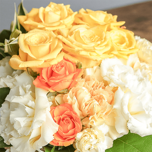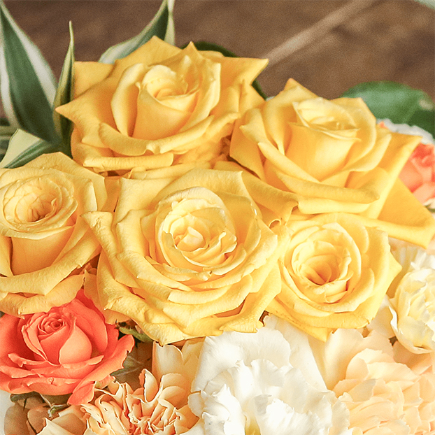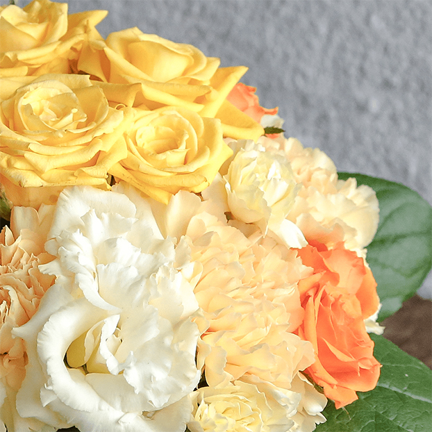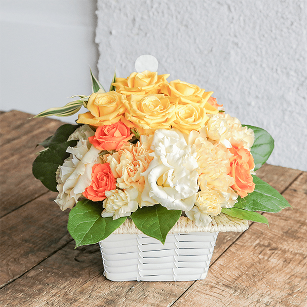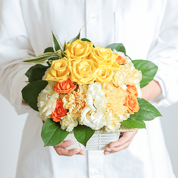黄色のバラをメインに爽やかな気分になれるビタミンカラーで、グラデーションが美しいアレンジメントです。