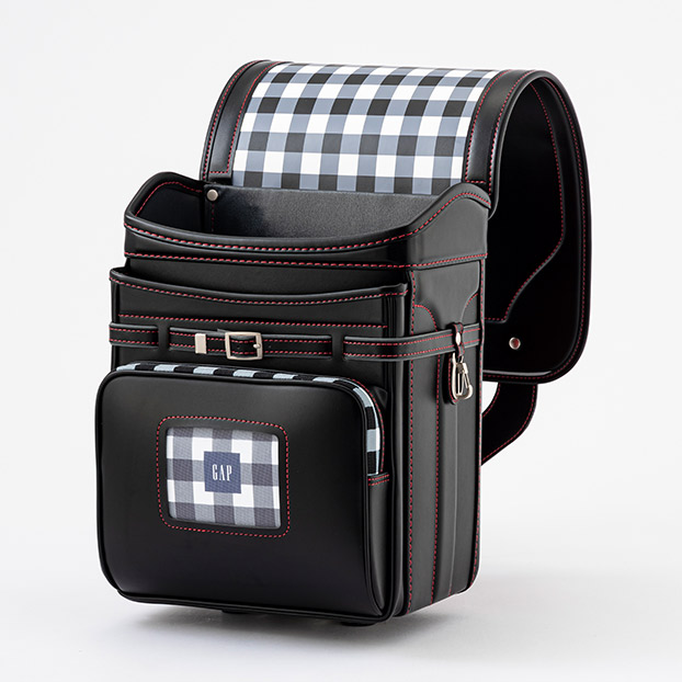 | ①無駄な装飾をはぶいた一見シンプルなデザイン ②かぶせ裏はGAPらしいトラディショナルなチェック柄を採用 ③エコ素材の撥水性・耐久性に優れたタフガード®ライトを採用 |