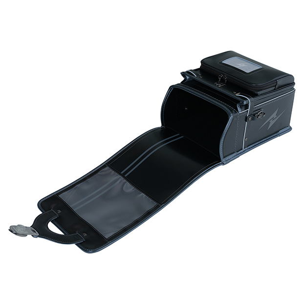 | ①くるピタ錠前 ②イナズマモチーフの反射材 ③楽ピタ肩ベルトに高クッション採用 |
