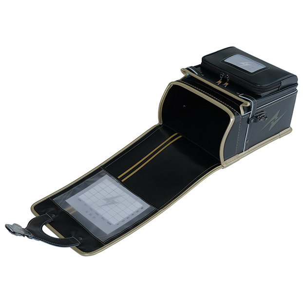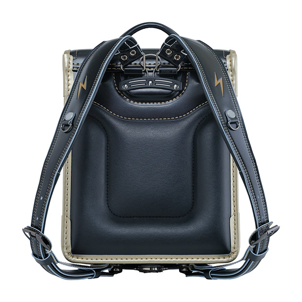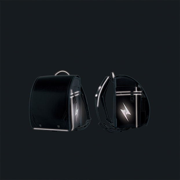 | ①くるピタ錠前 ②イナズマモチーフの反射材 ③楽ピタ肩ベルトに高クッション採用 |