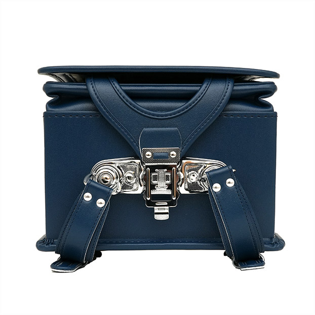 | ①スポーティーで大胆なビッグストライプ ②ブランドロゴが銀糸の刺繍でエレガント ③表地のカラーとシボ感が上品 |