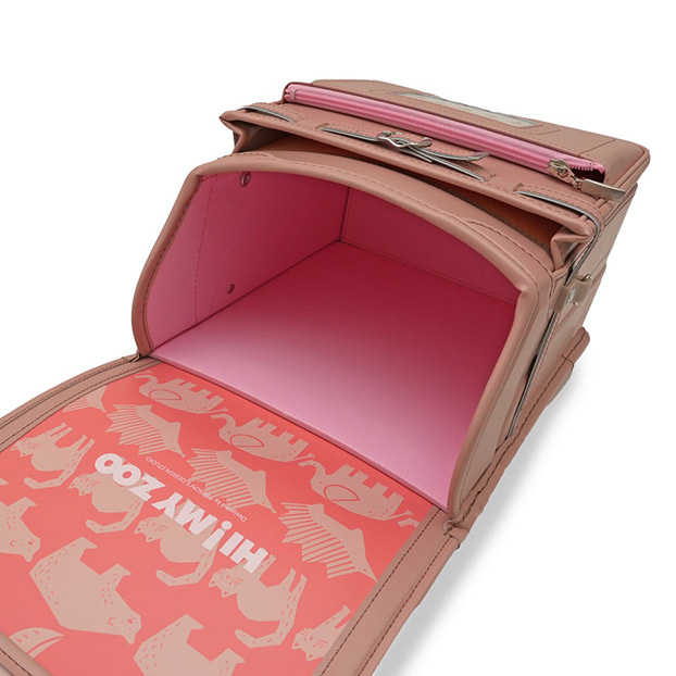 | ①13.5cmマチで大容量 ②1,090gと超軽量 ③かぶせ裏の動物柄が特徴的 |