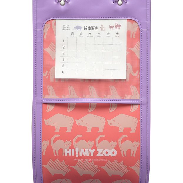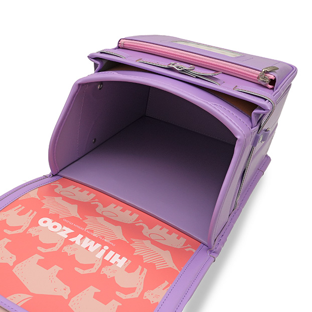 | ①13.5cmマチで大容量 ②1,090gと超軽量 ③かぶせ裏の動物柄が特徴的 |