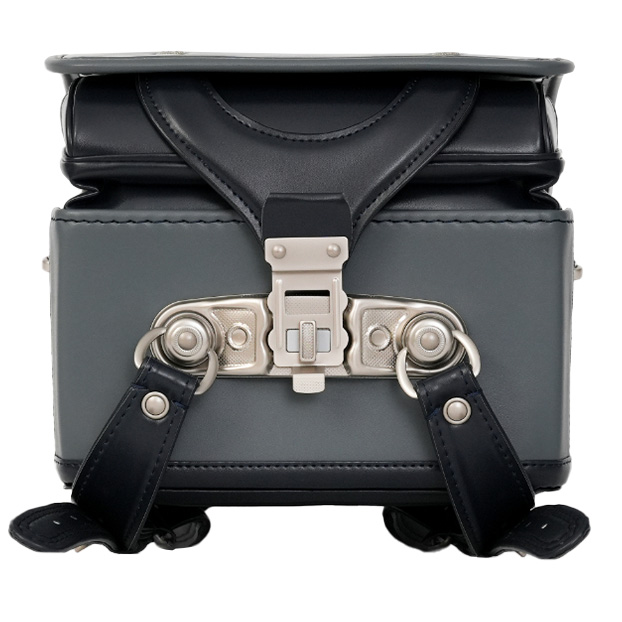 | ①バータックのステッチワークを左右に利かせ、よりカジュアルなイメージ ②ベルト留めをバックル留めにしています ③特別な配色で他にはないランドセル |