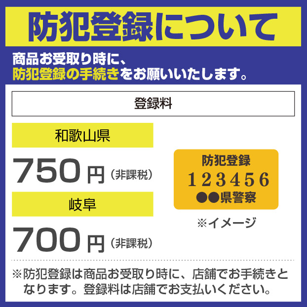 登録料は、和歌山県750円(非課税)、岐阜県700円(非課税)となります。